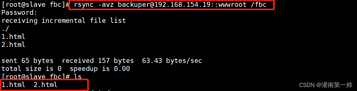 rsync -avz backuper@192.168.10.10::wwwroot /root#backuper指的是我在同步的时候用的哪个用户身份
