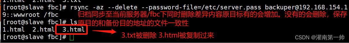 rsync -az --delete --password-file=/etc/server.pass backuper@192.168.154.19::wwwroot /fbc#rsync,