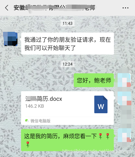 当时老师加我的时候,我的简历还是原来机械专业的简历,我就花了半个多小时的时间粗糙的做了一下