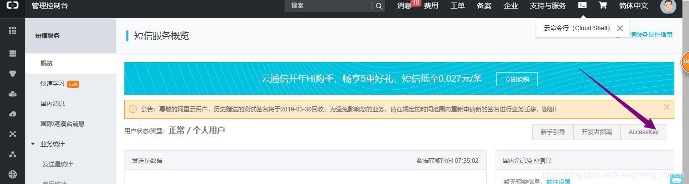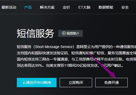 第三步:第一次注册需要“开通短信服务”(如果已经开通过,跳过此步骤)