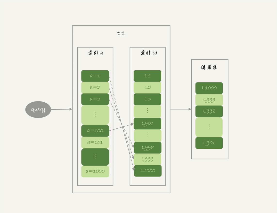 如果随着a的值递增顺序查询的话,id的值就变成随机的,那么就会出现随机访问,性能比较差。
