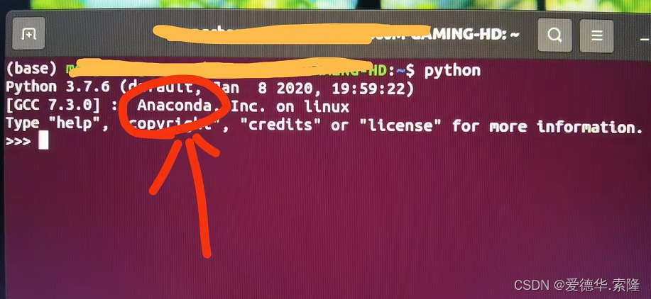 我们就安装好了anaconda3,在终端输入 :python 出现如下图,则anaconda安装成功