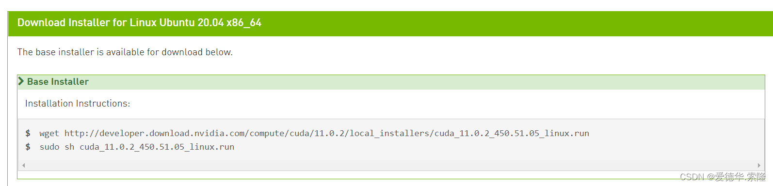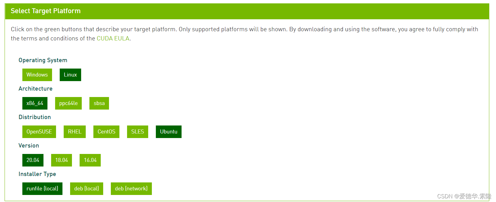 点击【linux】---【X86_64】---【Ubuntu】---【20.04】---【runfile (local)】