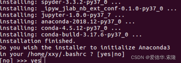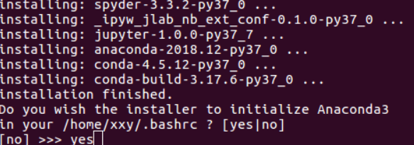 等待安装完之后,会询问是否把anaconda的bin添加到用户的环境变量中?输入yes