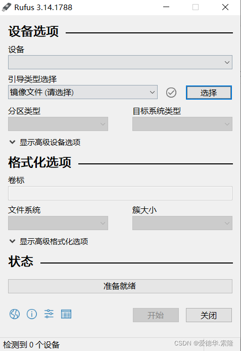 3、打开工具---插入空的u盘---在选择处---选择下载好的ubuntu20.04的系统---点击开始