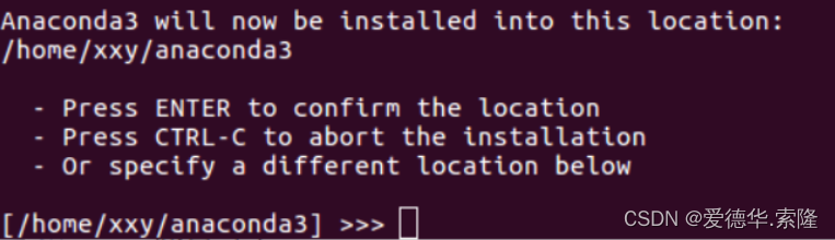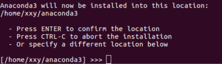 之后就提示你要将Anaconda安装在目录/home/xxx/anaconda3下面:(建议使用此目录)。