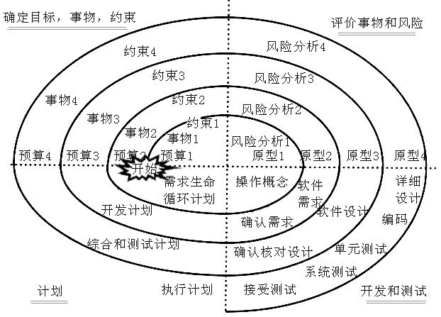 特别适合于大型复杂的系统,沿着螺线进行若干次的迭代,图中的四个象限代表了一下活动: