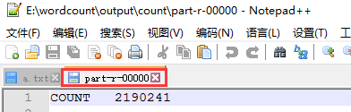 运行后:E:\wordcount\output\count\part-r-00000的值如下: