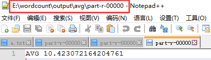 最终的平均值是:E:\wordcount\output\avg\part-r-00000