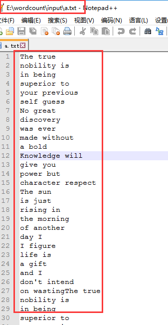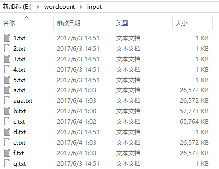 在E:\wordcount\input目录下准备小文件(总大小为224M),如: