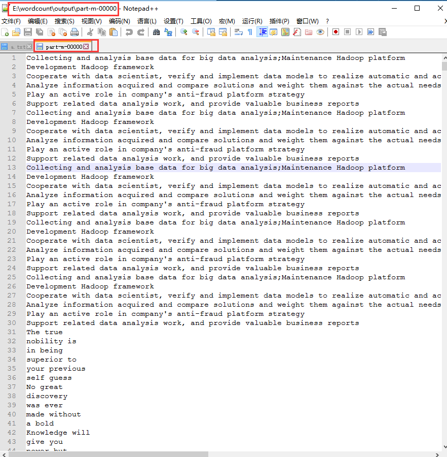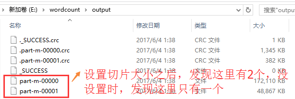 执行完成程序之后,进入E:\wordcount\output查看内容: