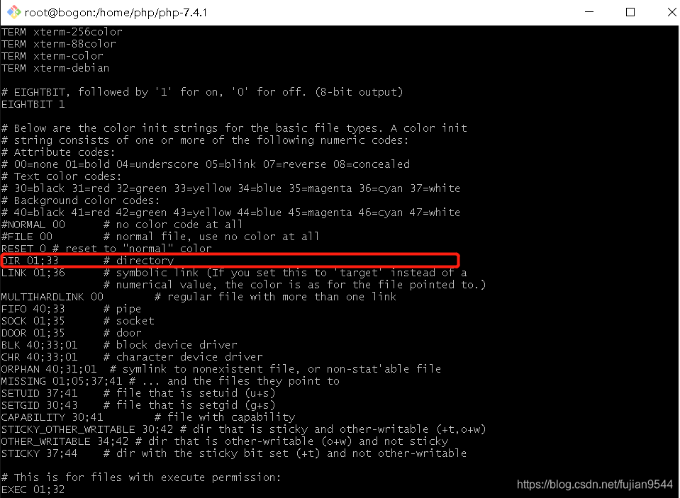 2.编辑/etc/DIR_COLORS文件:想改成其他颜色,请参看上面的数字对应的颜色说明