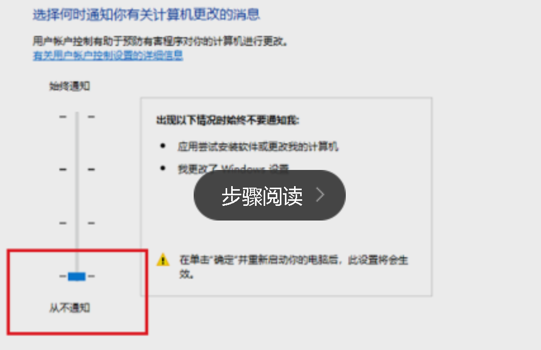 5.选择更改用户账户控制设置