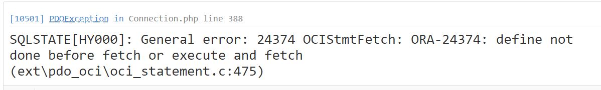 General error: 24374 OCIStmtFetch: ORA-24374: define not done before fetch or execute and fetch
