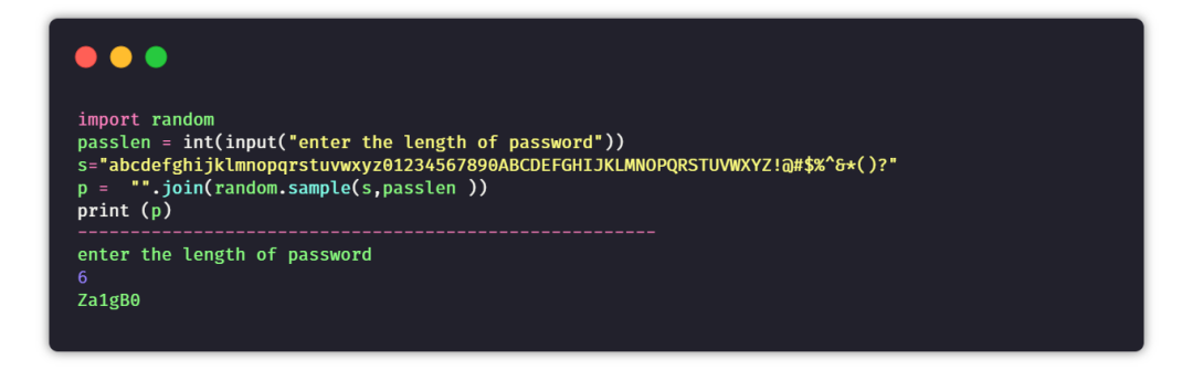 目标:创建一个程序,可指定密码长度,生成一串随机密码。