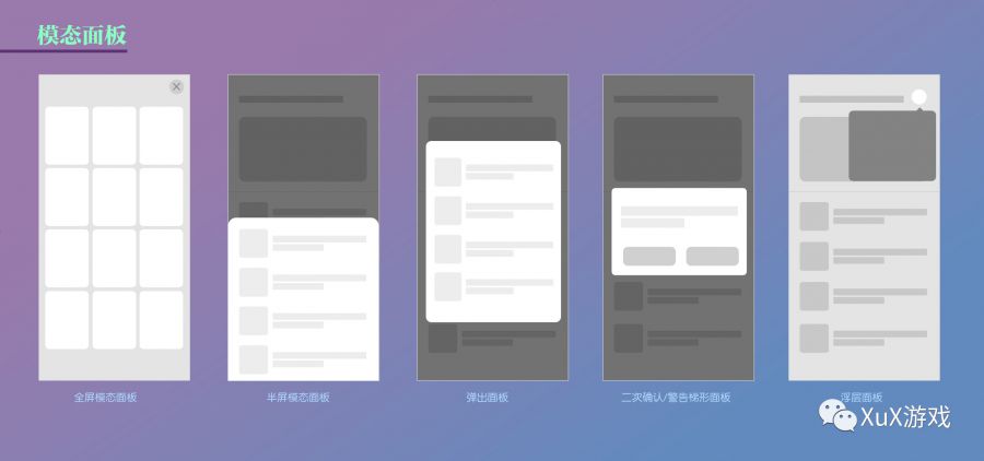 - 半屏模态面板(专注屏幕下半部分的分层内容,多应用于竖屏互联网产品中)