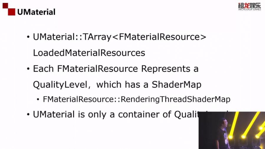 UMaterial本质上是一个数组的容器,他在运行期并不会知道需要去用哪一个质量等级,也就是不知道自己用哪一个Shader Map。他只是容器,后续是通过别的类来达到这样的选择。