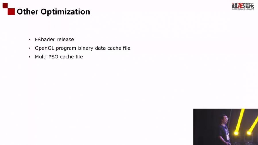 然后就是OpenGL的一个program binary data cache。这个是在OpenGL里面,安卓平台下面,当你设置一个shader的时候,你需要Link。Link有点卡,当然如果Fps游戏FShader不多的时候,不会感觉特别明显。但是《龙族幻想》有很多Shader,并且不同的模型可能Shader会不一样,他的这种卡顿就会变成一个问题。
