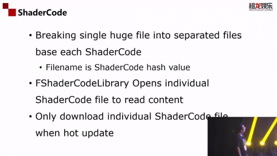 这个我们当时觉得用的还是挺好的,后来在后续版本里它合并成一个大的文件了,这个大的文件里面包含着若干个小的ShaderCode,相当于一个虚拟文件系统。他的初衷可能想做一个这方面的优化,因为它的虚拟文件包是pak,可能是想单独为ShaderCode做一个优化。