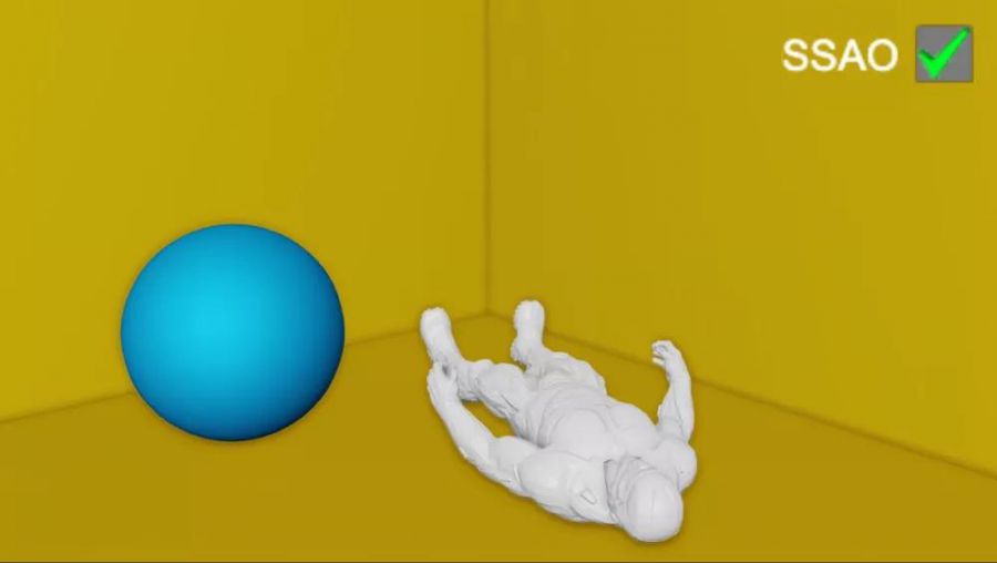 最后来看下最终的渲染结果对比,首先是 SSAO 开启的效果: