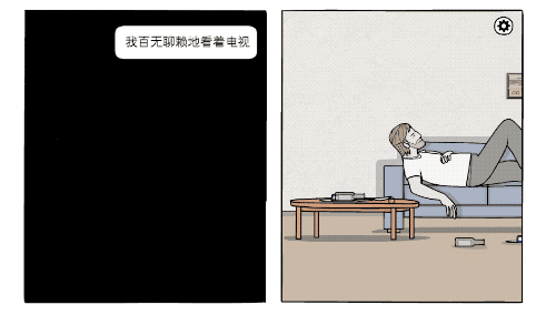 主人公说:「我百无聊赖地看着电视。」屏幕外的的你,滑动着卷轴画面,在房间里找到一台老彩电。
