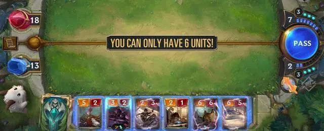 开发团队先是限制了战场上的空间。打出的单位牌首先会被放到准备区,宣告攻击时进入战斗区,战斗结束后撤回,以上两个区域的容纳上限都是 6 个单位,没有空间生成、撤回的单位都会被挤掉,直接消灭。另经测试,堆叠的容量也是有上限的,大约为 10 个项目左右。