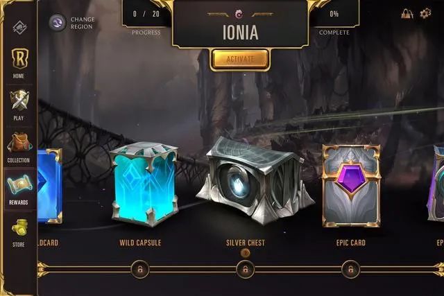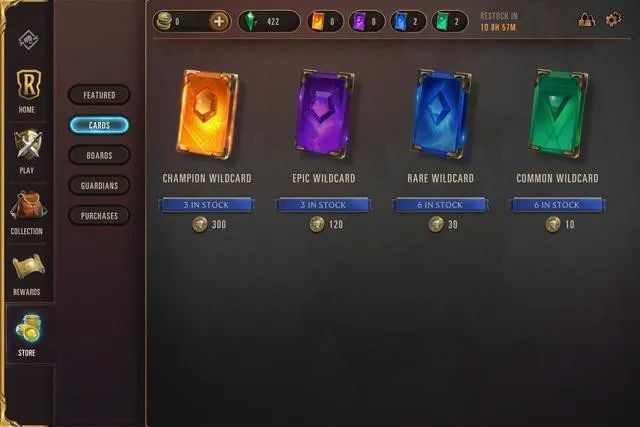 游戏中的 6 大地区各自带了一个免费的“奖励通行证”,挣游戏经验就能逐步解锁通行证中的里程碑,获得大量的地区卡牌或野卡;游戏每周都会为玩家提供三个免费的新牌包,每周玩的越多,这些牌包的品质就越高,体感来看,保持日常上线基本就可以从它们中开出不错的奖励,退一万步说,哪怕周周只上去领低保,富起来也只是时间问题;如果确实想花点钱抄近道,完全没有问题,商店里直接就有绿、蓝、紫、橙各种品质的野卡出售,可以买来直接合成想要的牌;纯粹的装饰性要素也没有缺席《LoR》,棋盘样式、小小守护者(坐在棋盘角落的可爱宠物)都可以花钱购买,相信以后还会有更多品类加入,毕竟这可是深谙皮肤商法的拳头开发的作品。