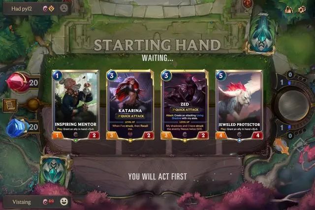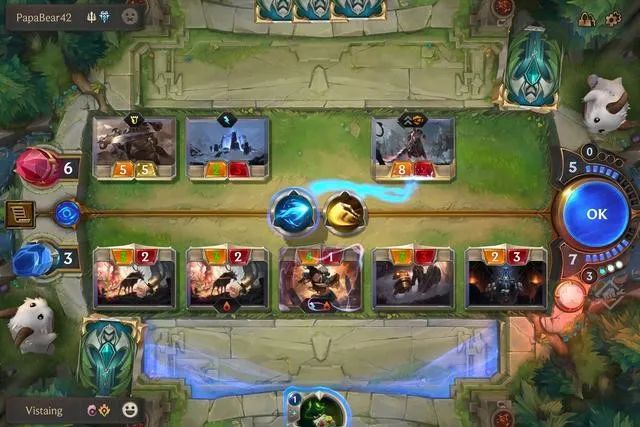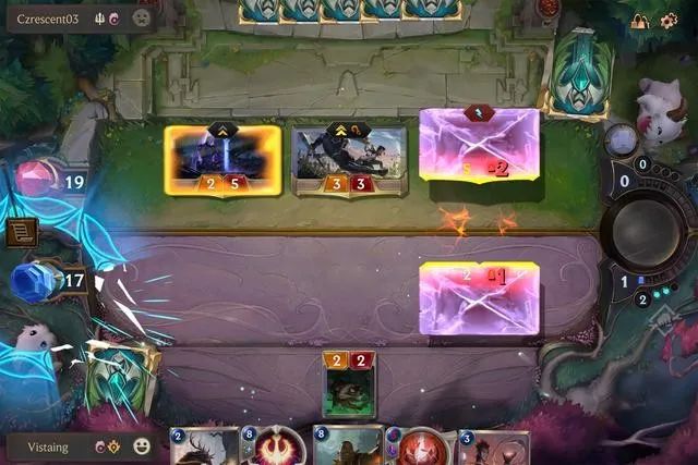 在对局当中,双方玩家初始的生命上限都为 20 点,需要做的就是召唤单位、使出法术与技能,在保护好自己的同时打空对手的血槽。