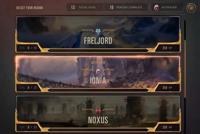 截至目前,率先登陆《LoR》的是 6 个声名远扬的地区:崇尚秘术与自然之力的艾欧尼亚(Ionia),兵力强盛的德玛西亚(Demacia),全力进攻、忽视防备的诺克萨斯(Noxus),借冰霜之力控场的弗雷尔卓德(Freljord),热衷于创造衍生物的皮尔特沃夫&祖安(Piltover & Zaun),以及释放恐惧、操控亡灵的暗影岛(Shadow Isles)。到目前为止,《LoR》中所有牌都被分到了其中的某一个地区,不存在跨地区牌和中立牌。