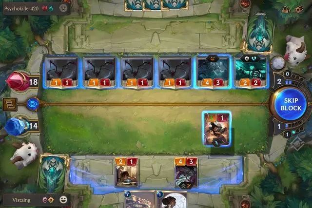 此外,《LoR》没有显式的墓地,这点与《炉石传说》是一致的,虽然一局中阵亡的单位、用过的法术都能被相关的卡牌效果调用,但并不存在一块可供玩家自主翻查的“墓地”区域,这确实削减了一些围绕墓地的卡牌设计空间,但客观上也给双方省了不少事。