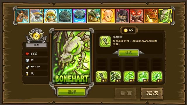 对于这些问题,许多优秀的塔防作品都给出了自己的答案。一方面,《王城守卫战》(kingdom rush)为我们揭示了一个通用且广泛的方法,那便是将游戏内的塔防策略抉择与游戏外的资质成长一起使用。《王城守卫战》中的塔有着多种类别,而在其上也有着极其优秀的分支升级(而非如《包围萝卜》的单纯数据升级),在分支塔升级到顶点时,还有特殊的技能可以解锁,循序渐进的游戏内容酝酿出优秀的游戏节奏。而游戏外也有着关于塔的永久升级,有助于玩家进一步积累成长的快感和提高策略度。
