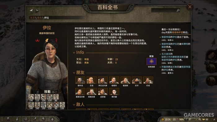 《骑砍》初代和战团的游戏中并没有过多强调世界观,玩家只能从酒馆里店老板和游吟诗人的只言片语里面隐隐约约的学习相关历史。而《骑砍2》则一定程度的丰富了世界观,首先通过一个可做可不做的“主线任务”,让玩家了解帝国三分的原因(反向曼齐克尔特战役),并通过找不同的领主问这场战役的情况,来侧面了解不同领主的个性——比如慷慨的拉盖亚,职业军人加里奥斯,狡诈的拉甘瓦德等等。尤其是南部帝国女皇拉盖亚的人设已然树立了起来,其女儿也是皇位继承人伊拉作为大量男玩家的结婚对象,大大咧咧的戎装公主的形象也被塑造得比较成功。而瓦兰迪亚北部德·提哈家族的女儿莉耶娜(连那)则是坐拥四大美德,明显是以圣女贞德来作为蓝本设计的人物。