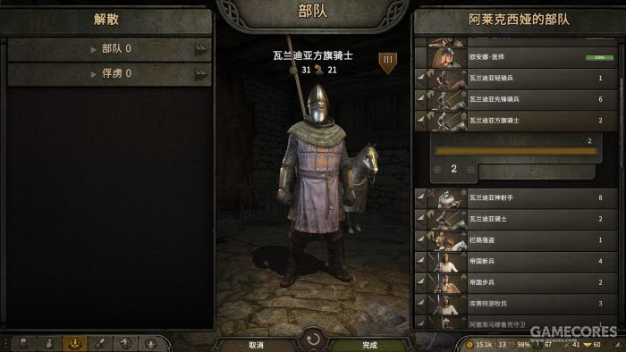 这一系统当然是没有传统TRPG的四象限9宫格式阵营划分那么精妙,但是确实弥补了《骑砍1》中游戏角色千篇一律的空白。但在现在这个开发阶段,这个美德系统的影响还没有太显著,一般是玩家在进行什么行为后,队中有特定美德或者恶德的队友会出来提意见。比如有“荣誉”美德的队友就见不得玩家舍弃一部分断后的士兵从战场中逃跑之类的;而美德系统也会和魅力系统共同作用来影响玩家在游戏中说服特定对象的成功率。