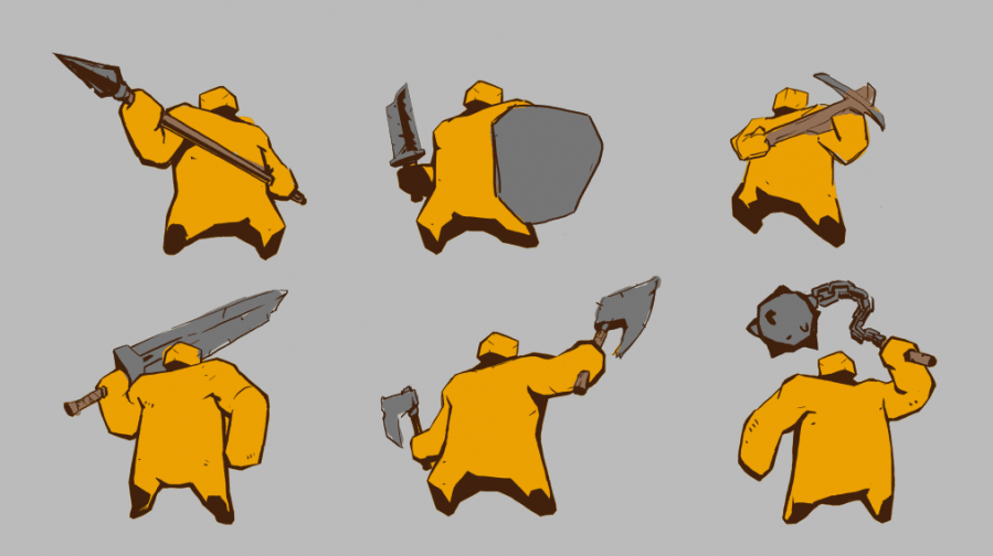 除此之外,士兵们简化的造型,更容易让人专注在战斗的本身,也更容易突出物理的效果。郭星:“当然,还有一个很重要的原因是比较好做,可以让游戏的演出不很依赖于美术的效果。美术的成本太高了,我们没什么钱。贫穷使人理智。”
