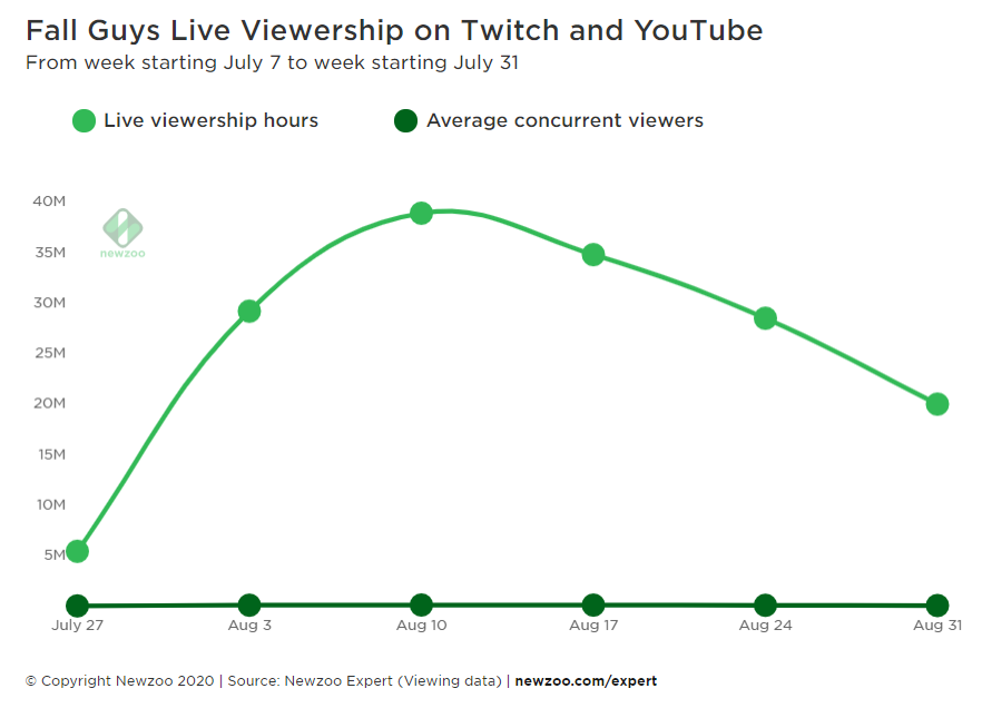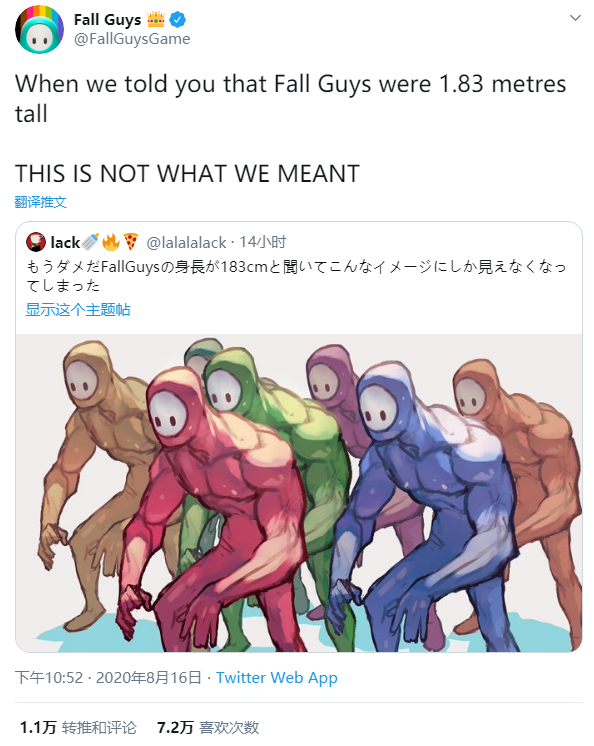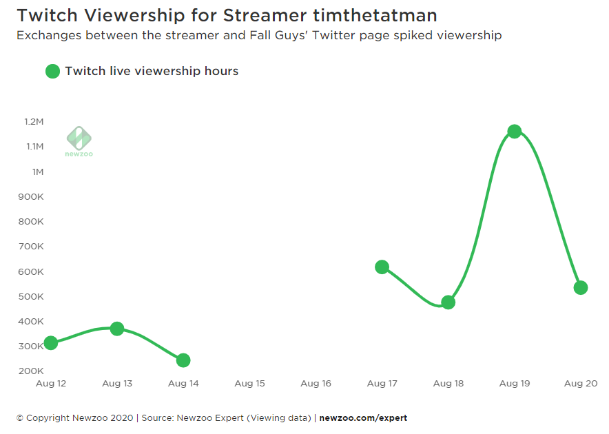 Mediatonic在Beta阶段就不断“放话”出去,在Twitter上组织活动,呼吁玩家转发推特来获得测试码。在8月份,《糖豆人》在Twitch和YouTube上的直播收看总人数就超过了1.13亿。