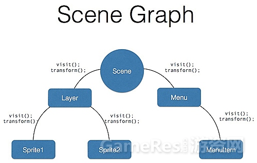 王哲:我们首先从新的渲染器着手。Cocos2d-x的核心结构就是场景结构树,它由一个根节点延伸出许多子节点。(如图1所示)