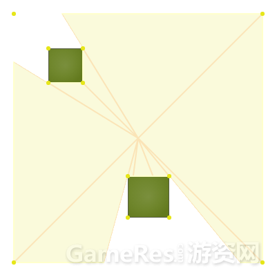 Wade Tritschler建议手工移植,所产生的代码要比使用Haxe输出的代码更干净。我同意这个观点。如果你手写代码还可以更好得了解该算法。尽管该算法主要在CPU中进行,可以使用GPU为位图进行三角形渲染和合并位图输出。(布尔AND操作可变成位图乘法;布尔OR操作可变成位图添加和钳位。)在我的项目中该性能已经足够,所以我还没有构建GPU版本。如果你的游戏有CPU限制,可以考虑使用消减算法(而不是这里显示的添加算法),渲染四边形的每条线段的影子。它会增加GPU渲染负载,但它并不需要在CPU上排序。如果填充率是一个问题,考虑渲染一个比游戏画面分辨率低的光度图,然后扩大它。