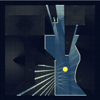 2D的俯视图经常用于从给定点计算可视区域。例如,你可能想把某些东西隐藏在玩家看不见的地方,亦或你想知道点燃火炬后能看见什么地方。