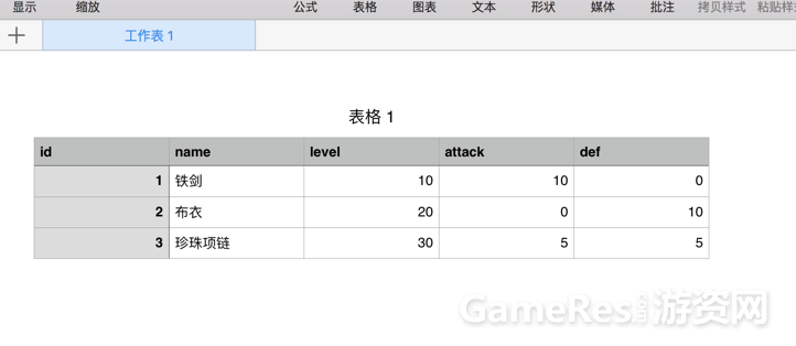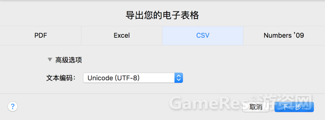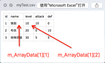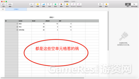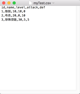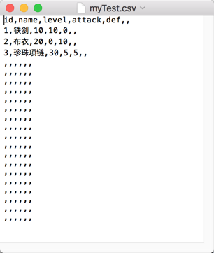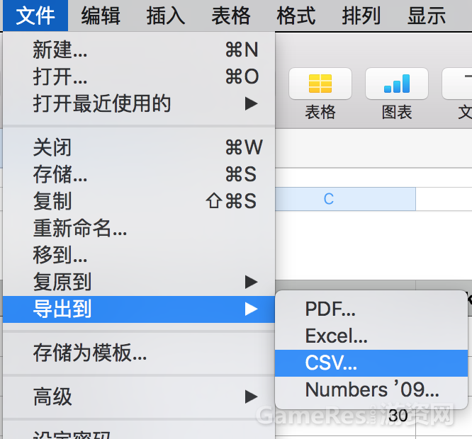 一般情况下,制作游戏数据会用到表格软件,windows下常用Excel,而Mac下常用Numbers,而这两种软件都可以导出我们本例所需要的文件——CSV文件。