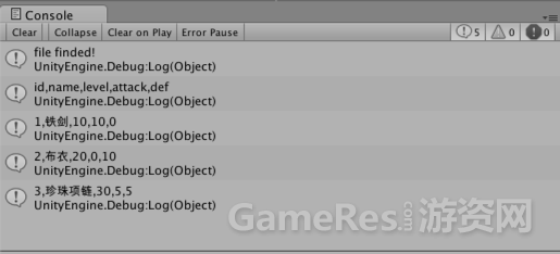 可以看到,现在我们已经可以读取到文件里面的内容了,并且是可以分解每一行的内容分别是什么,但是这样的解析程度还远远不够,不能为我们所用,假设我们游戏中需要生成一件装备布衣,我们需要通过文件获
