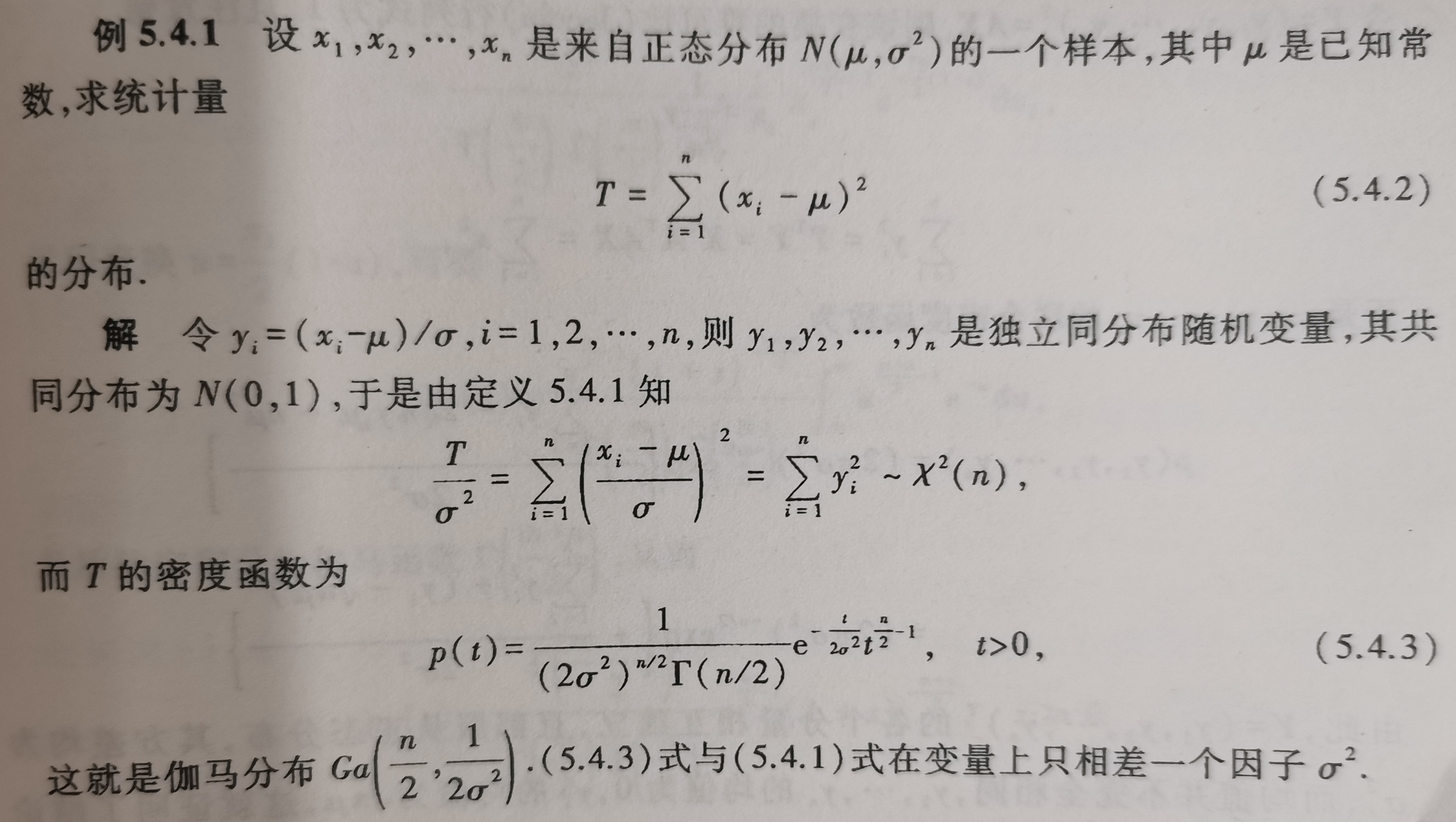 由伽马分布的可加性,X2=Sum(Xi2),X^2~Ga((1/2)n,1/2)