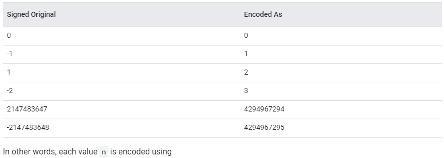 如果按照完整存储的话,一直到31位都是1,所以需要4个字节的空间,而如果按照zigzag 方式,-1 将会被转换为1,只需要 1 个字节的空间。