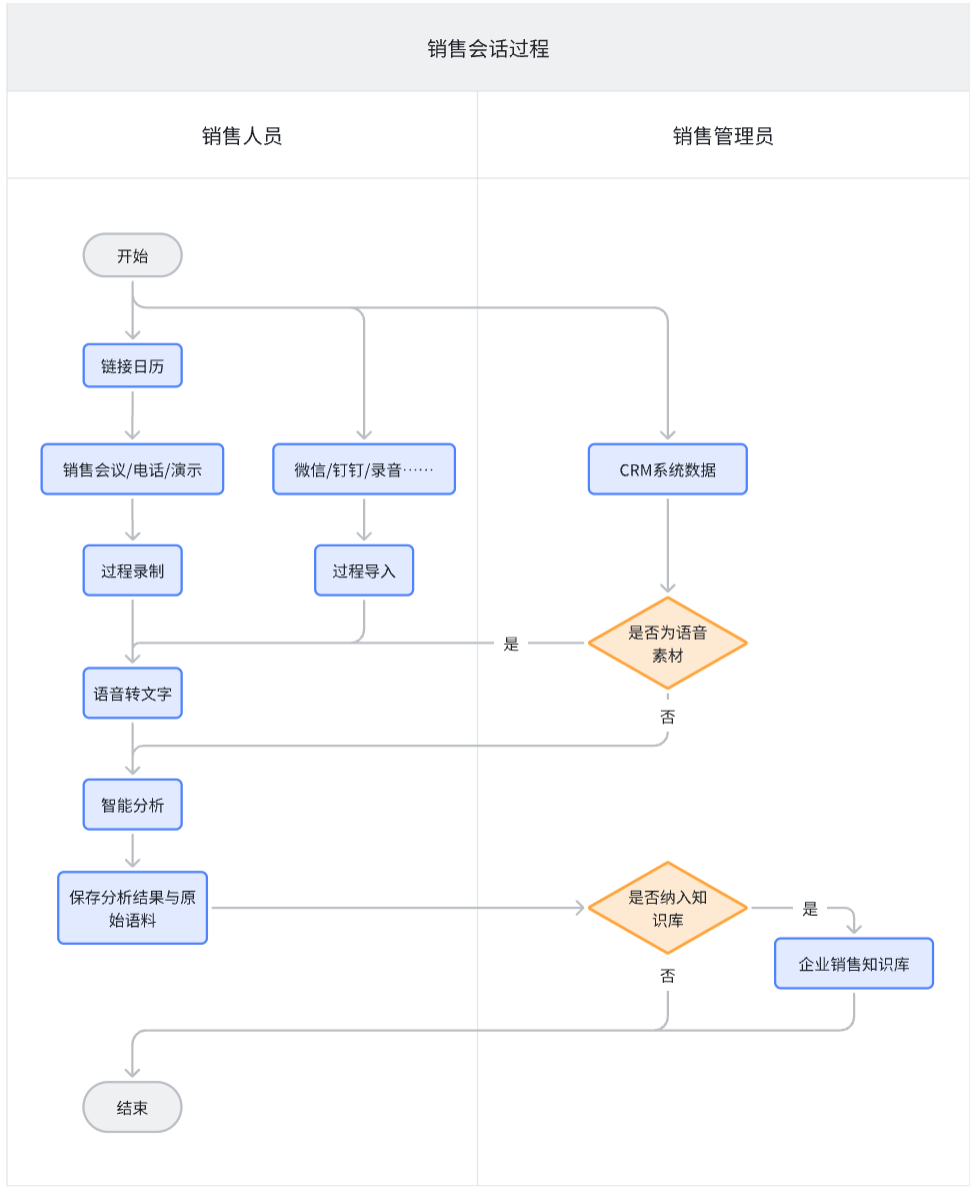 - 销售人员,通过捕捉会话,转化为智能、可审查的“剪辑库资源”,迭代优化销售会话