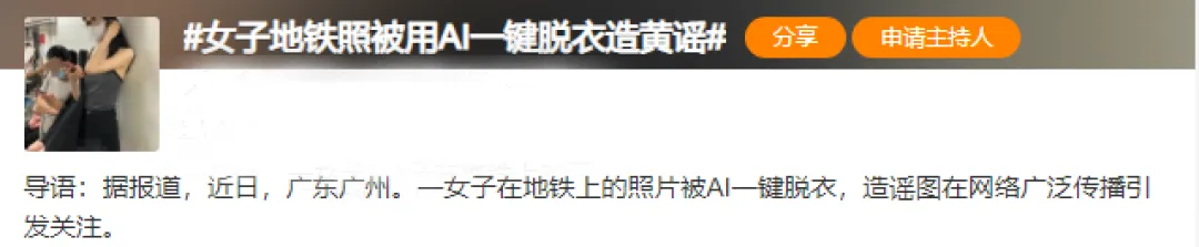 包括很早之前的案例,一位广州女生在地铁拍的美照,被个别网友,用AI一键脱衣软件生成了裸体照片。换脸的前提是需要拍下照片,普通手机举起的瞬间就有很大概率被注意到,而眼镜则可以悄无声息的进行拍摄。