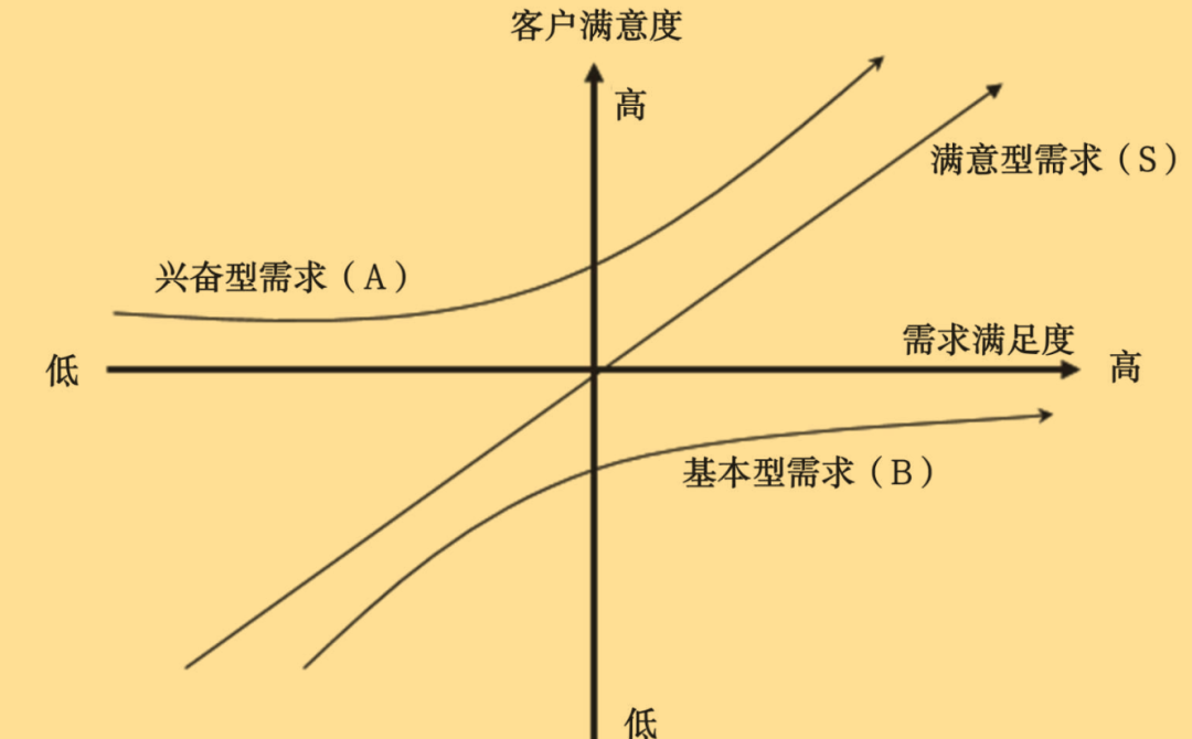 B-基本型需求(Basic):基本型需求是客户认为产品“必须具备”的属性或功能。当产品不满足客户这类需求时,客户会很不满意,基本不会去购买这个产品;当产品满足客户这类需求时,客户会认为是理所应当的。