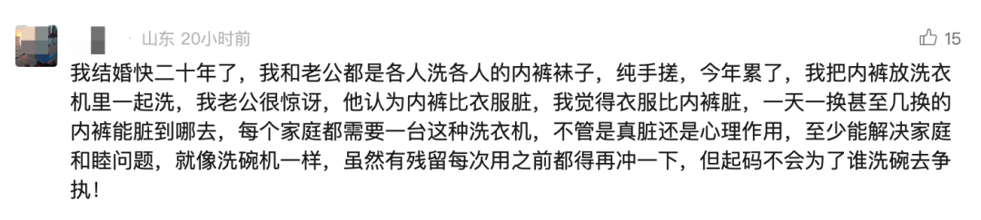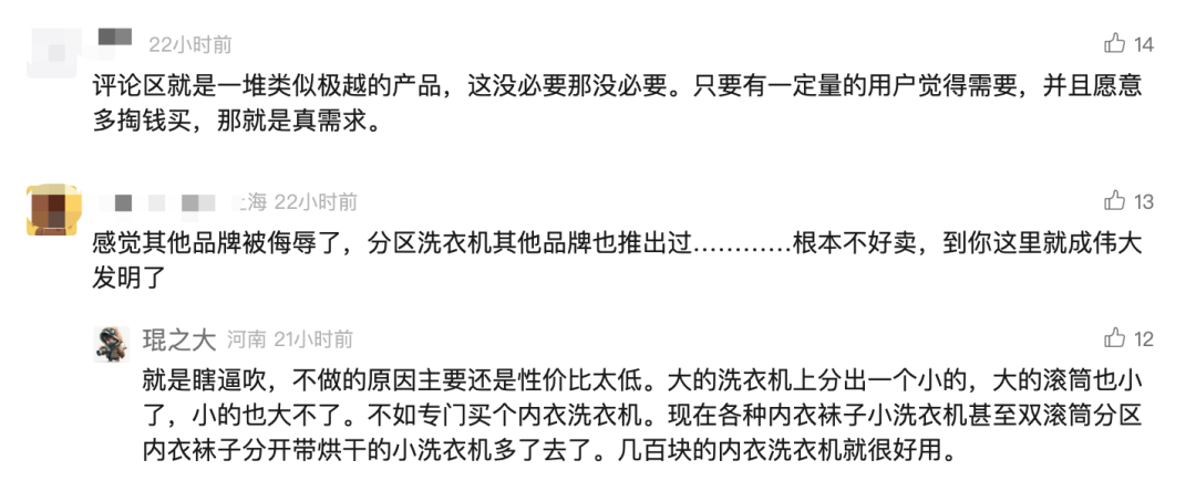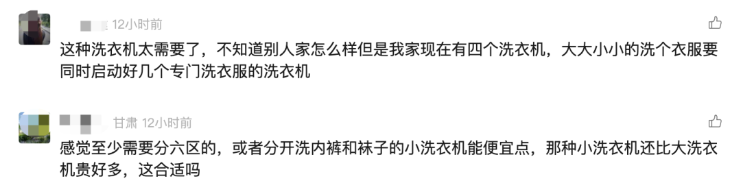 但是会有不同社会身份、不同视角、不同性别对于分区洗衣机的观点,我罗列下来,大家看看: