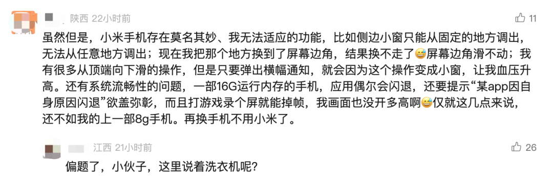 有跑题的,从讨论洗衣机讨论到小米手机的: