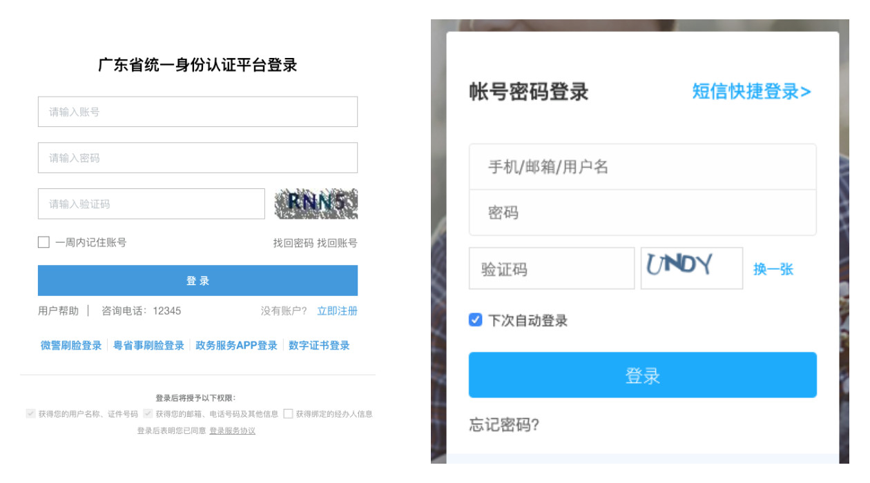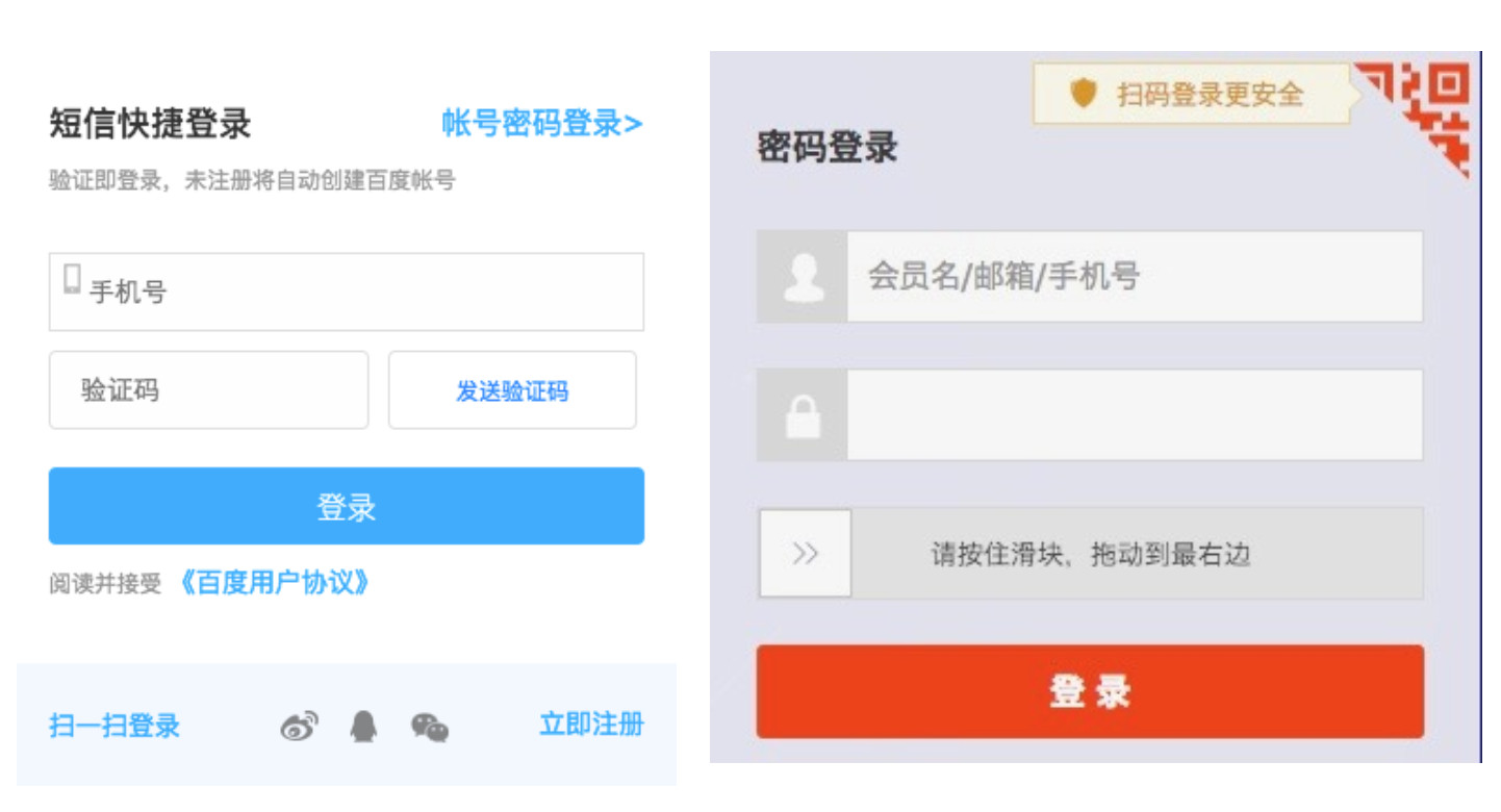 “账号+密码”方式是最常见的登录方式,其中,账号也包括好几种形式: