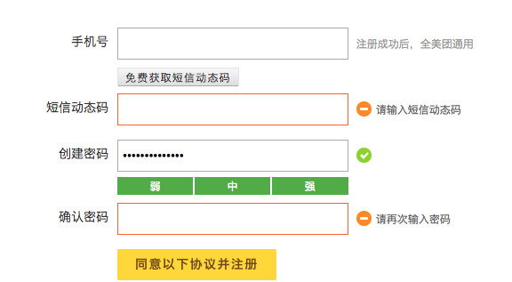 尽量避免用户不知情况下,屡次出错而被要求多次重录,挑战用户耐心。如:标明信息必填项、提示密码规则、显示密码强度、注册流程提示(注册环节复杂的设计)