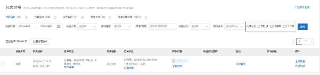 一般为下拉选项,选项过少时,可平铺展开(如下图,可将处理状态直接平铺展开),平铺展开的好处是用户能直接看到选项内容,方便用户识别选项,且提高了用户筛选的效率(节省了筛选操作)。